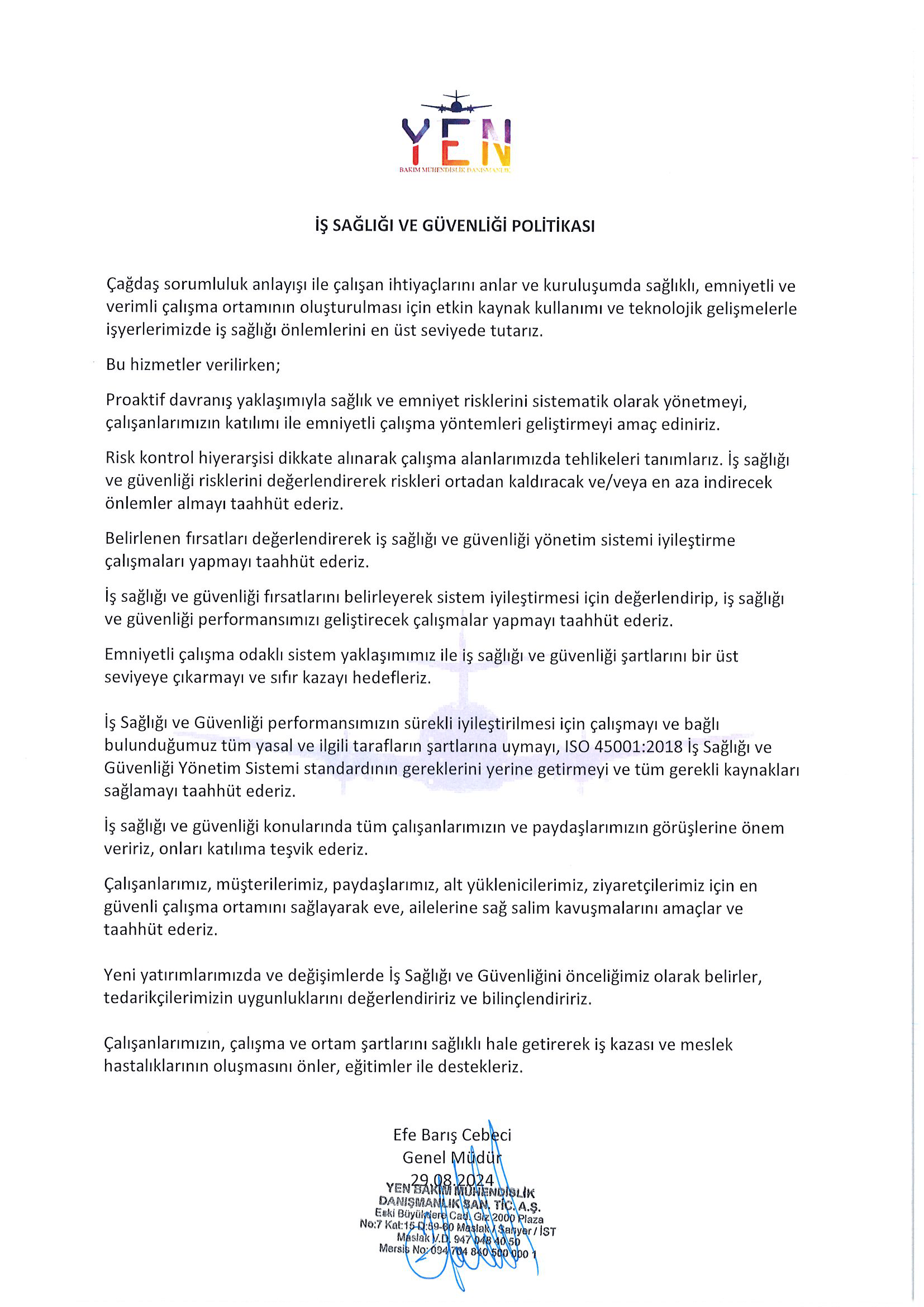 SAĞLIK, EMNİYET, ÇEVRE, KALİTE (SEÇ-K) POLİTİKAMIZ