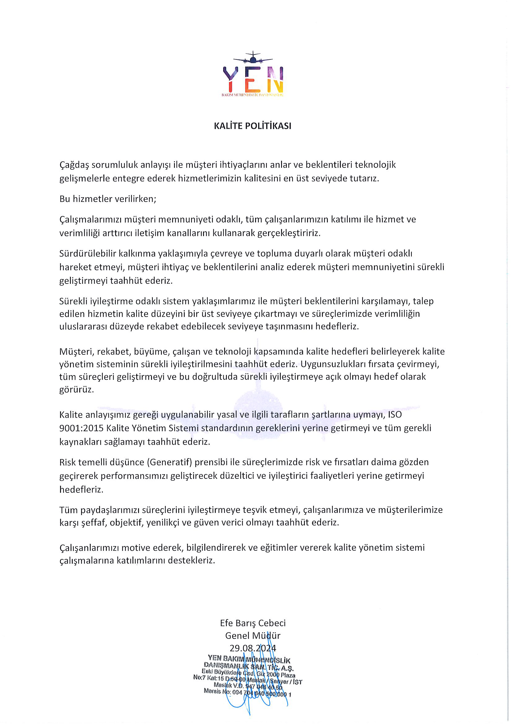 Çalışmalarımızı müşteri memnuniyeti odaklı, tüm çalışanlarımızın katılımı ile hizmet ve