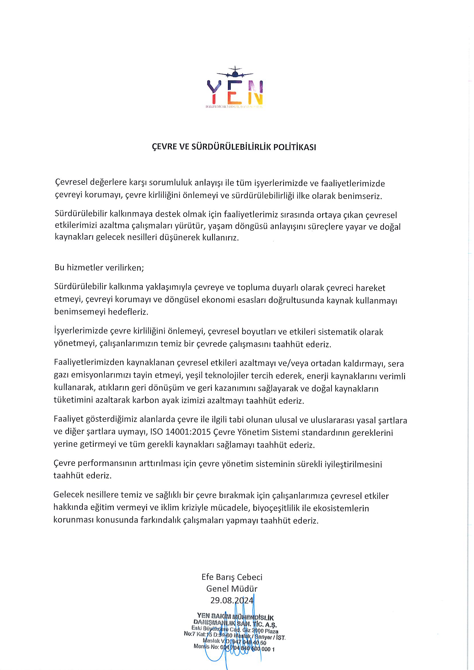 Sürdürülebilir kalkınmaya destek olmak için faaliyetlerimiz sırasında ortaya çıkan çevresel